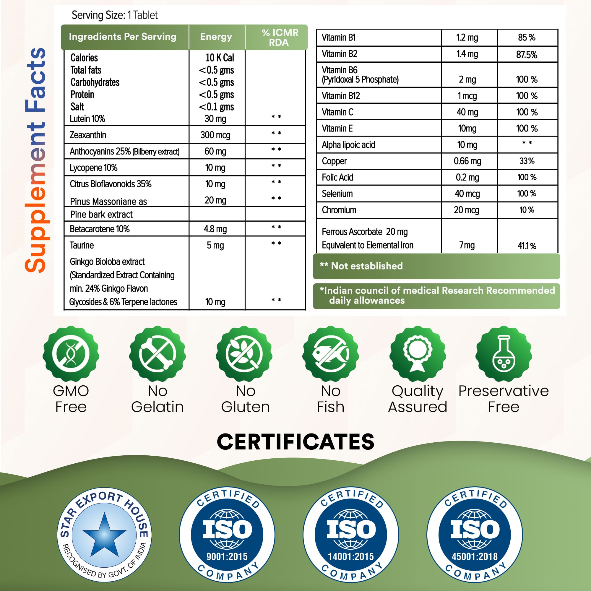 Top-notch eye vitamins! Decreased eye fatigue and improved night vision. Highly beneficial for overall eye care